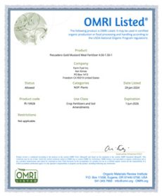 Pescadero Gold Mustard Seed Meal Fertilizer is approved for organic production. Our fertilizer is rich in natural plant nutrients and amino acids. Its formulation is 100% plant-derived allowing for a unique organic composition with positive impacts on microbes in the soil. This, coupled with its highly bioavailable nutrient profile drastically improves crop nutrient uptake and therefore overall crop performance. There are no additives or preservatives used during manufacturing. This creates a unique, high-quality product that goes unmatched in the marketplace. Pescadero Gold continues to impress growers of all crops throughout North America with its ability to enhance crop performance both in the field and in container production.